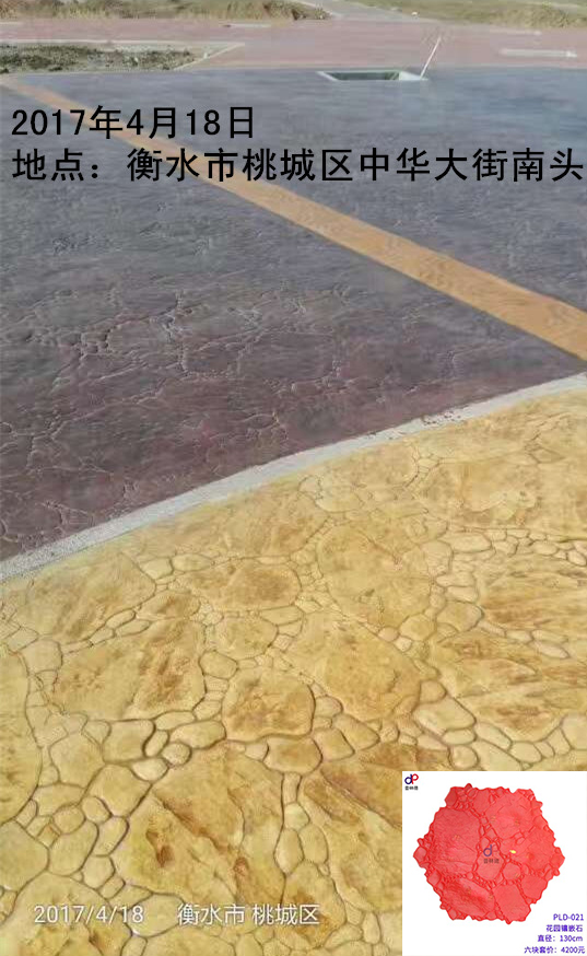 項目名稱:衡水市中華大街南頭壓模壓花地坪工程 項目地址:衡水市中華大街南頭 竣工時